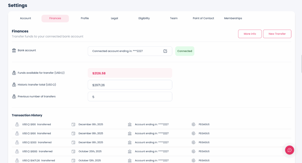 Pegasus connects directly to the show’s own bank account. When riders pay online, the funds belong to the show and can be transferred to the show’s bank account whenever the organizer chooses. There is no waiting until the end of the show and no third party holding entry revenue.